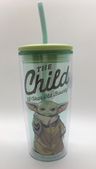 20 oz travel tumbler with straw featuring the Mandalorian favourite Grogu.