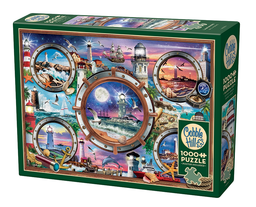 For our ocean lovers, we have Lighthouses, a collage of many beautiful beacons of light. The lighthouses are not just in the portals, but throughout the 1000 piece scenic puzzle with a background full of all things nautical and ocean worthy like sailboats, dophins, seagulls, and maybe even treasure - if you count the pearl in the oyster!