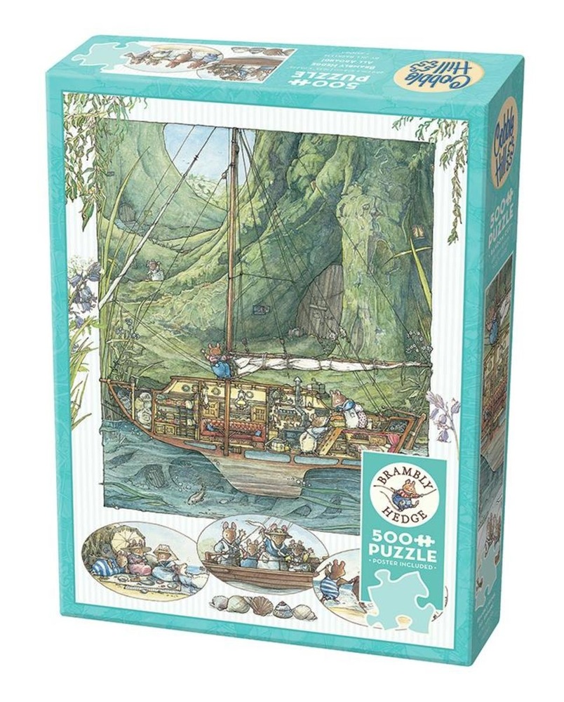 Brambly Hedge All Aboard! is an enchanting peek into the sweet, serene world of country mice as they embark on a sailing adventure. Aboard their charming boat, they wave goodbye to their woodland friends who live high up in grand trees, setting sail for a delightful vacation. Inside their cozy boat, every detail is filled with warmth and whimsy, capturing the gentle joys of country life on the water. This heartwarming puzzle is sure to bring a smile to anyone who loves the magic of nature and the cuteness of tiny adventures.