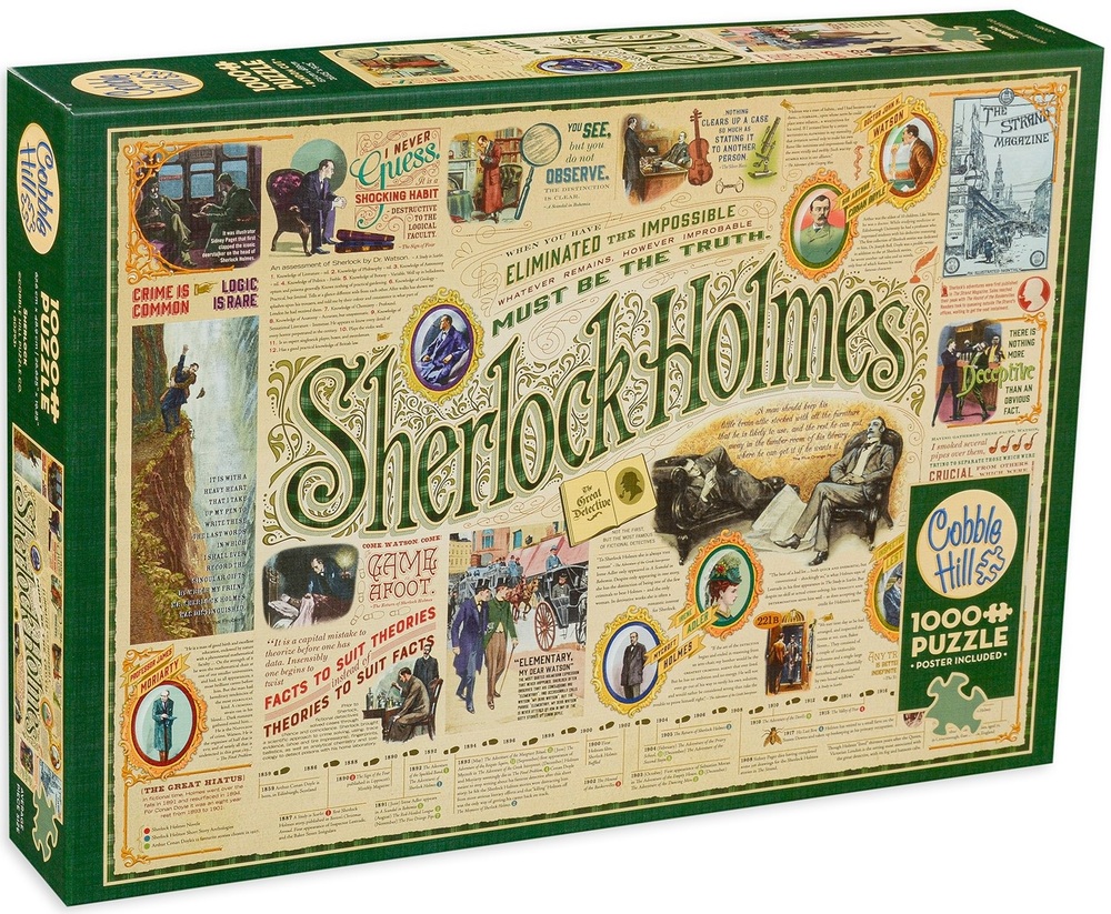 Can you solve this Sherlock puzzle? Learn interesting facts in this information puzzle about all things Mr. Holmes. The puzzle is afoot in this Truly Original Photo (T.O.P.) puzzle created in-house by our design team for your learning pleasure. Take an adventure with Cobble Hill's 1000 piece random cut puzzle that includes a reference poster.