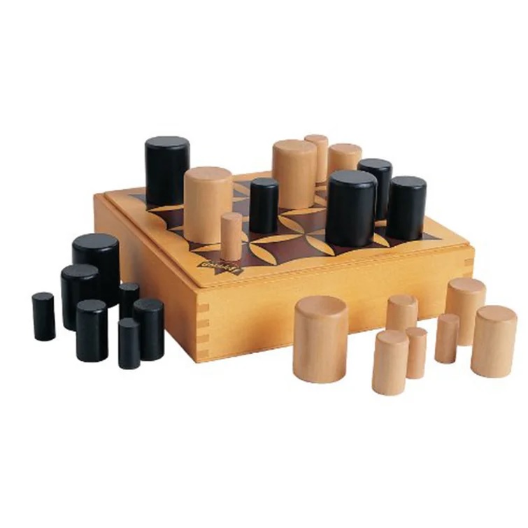 Gobblet plays like Tic-Tac-Toe but with strategy and memory mixed in. This all wooden board game takes just seconds to learn but a lifetime to master. Gobble up, line up four pieces in a row and win! Elegantly designed and sustainably made, Gobblet self-stores all the playing pieces and looks attractive on display. With irresistible, fast-moving play and astonishingly simple rules, Gobblet is a fun strategy game for the whole family!
