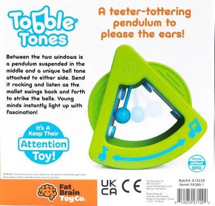 Between the two transparent windows is a little mallet suspended in the middle and a unique bell tone attached to either wall. Send it rocking and listen as the hammer swings back and forth to strike the bells. Young minds instantly light up with fascination!