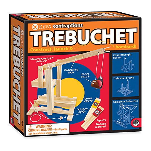 Build your own medieval siege engine from pre-drilled planks, a little glue and the help of easy, step-by-step "blueprint" instructions. Then let the fun and experimentation begin! What travels farther: a marshmallow or a piece of macaroni? Alter the counterweight to adjust the trebuchet's hurl, and practice knocking down a field of target planks using the two included balls.
