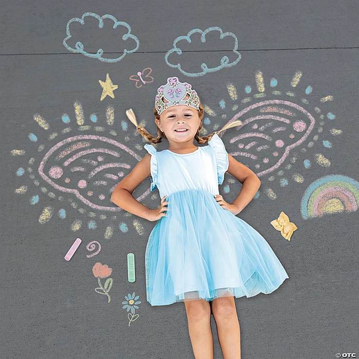 Oh So Fun! Fairy Chalk Set lets kids use their imaginations and included items to become whimsical fairies! Young fans of all things fairies can use the included wing stencils to draw their own fairy wings, then color them in with the chalk in various colors and designs. Beautifully shaped fairy chalk pieces add to the fun as budding artists turn driveways and most any outdoor space into a haven for imaginative play. Hours of imaginative play await as kids frolic the fairy-shaped chalk figures around their chalk-drawn kingdoms!