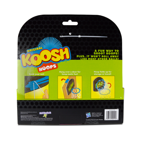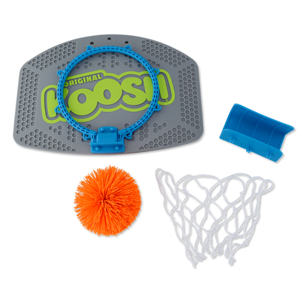 Shoot some hoops with Koosh Hoops and see how many baskets you can make! The same quality construction that has made Koosh® a top toy for decades has so many awesome ways to play! Koosh Hoops comes with two Koosh balls, so play solo or compete with a friend! Koosh is great for playing indoors, outdoors, at home, or on the go. Designed for effortless play, Koosh is easy to catch but hard to put down!