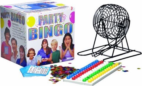 This kit contains a high quality bingo cage bingo mastercard 300 bingo chips and bingo balls numbered 1-75. Metal cage is vinyl coated for extra durability. This cage measures 12 x 12 x 12 high. Great fun for the entire family!