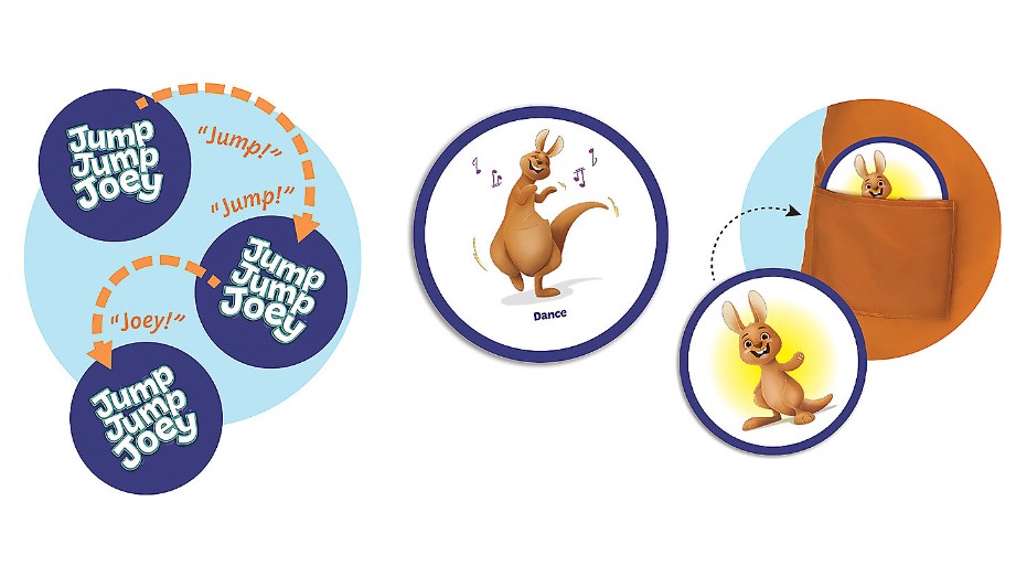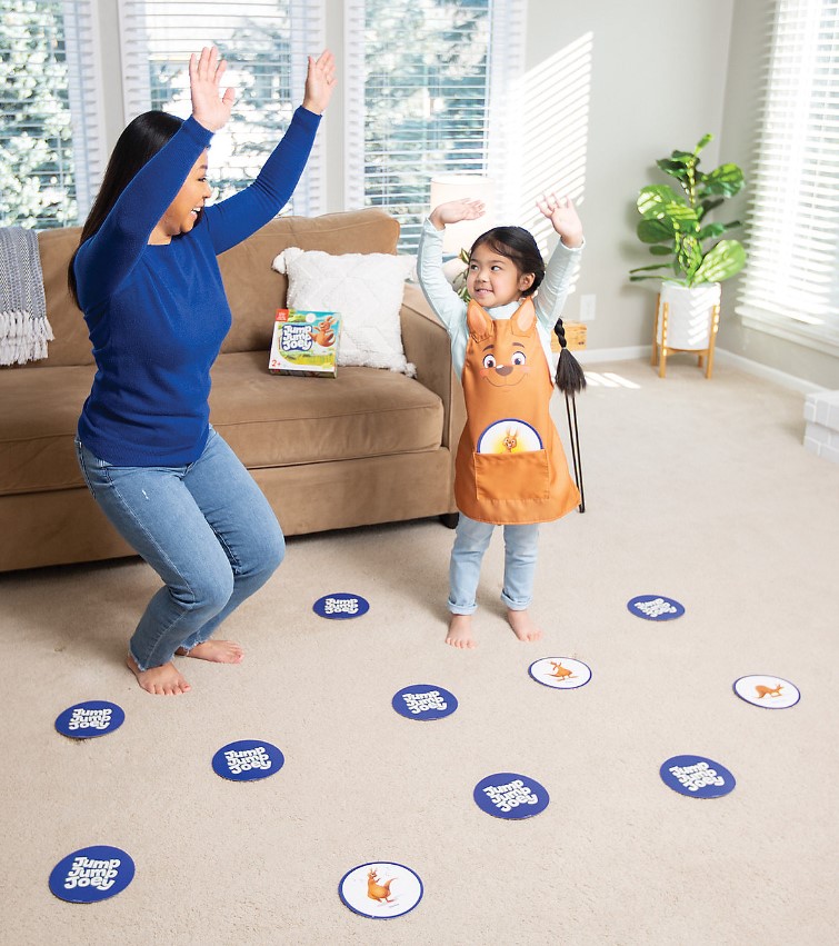 This hop-around-the-room game encourages active play as toddlers learn, laugh and move! Toddlers turn over cards and perform actions shown as they hunt for the baby kangaroo in this sweet active play game. Jump Jump Joey encourages gross motor development, listening and following directions, imitating, pretend play and vocabulary development.