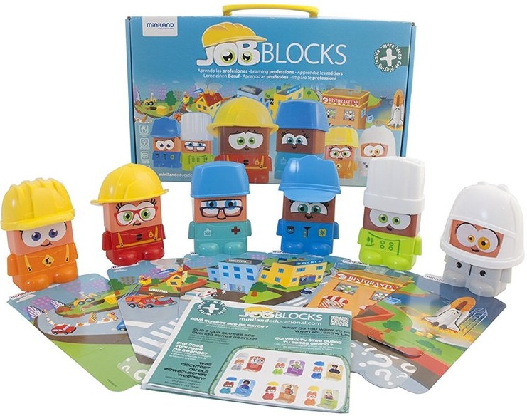 What do you want to be when you grow up? The Job Blocks game from Miniland is a fun way for children to explore different professions. This game includes six expressive characters, six occupation hats, six game scenery cards and a "More Ideas To Play" brochure, ensuring that the fun never ends.