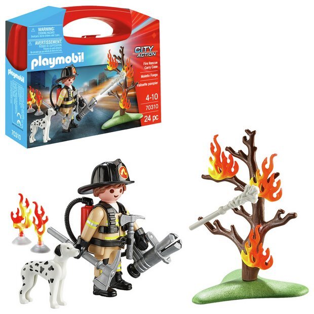 Be the first to arrives on the scene to put out the fire before it spreads with your Playmobil Firemen case. With the help of your faithful companion and all your equipment, you will be able to put out the fire without any problem. When you're done playing, put all the parts back in the case for the next time!
