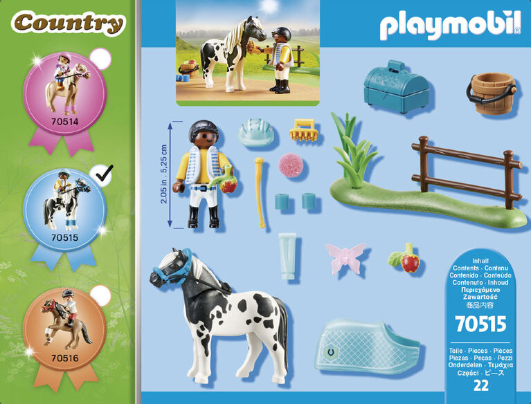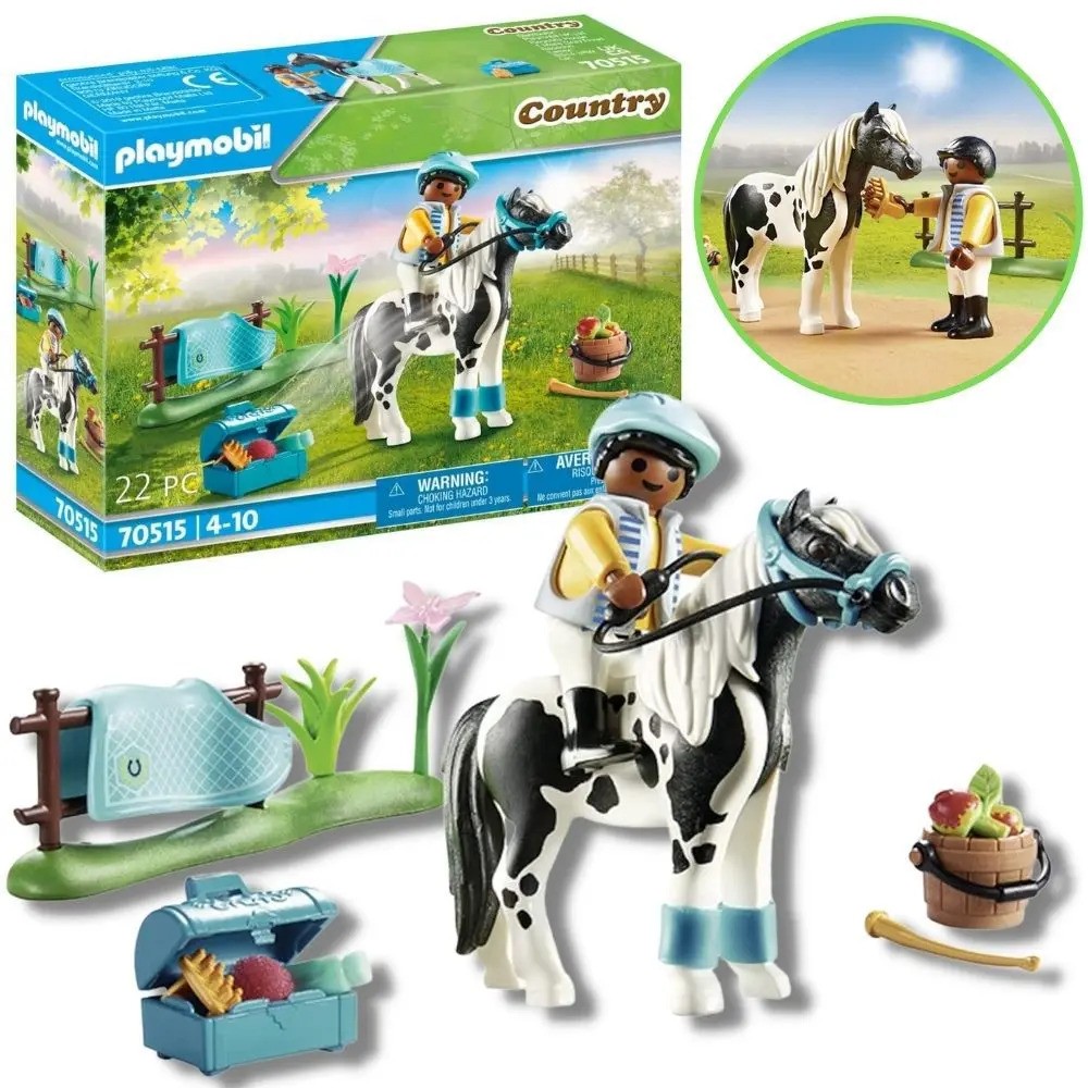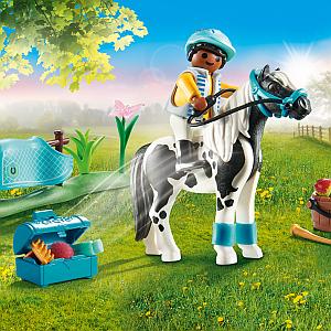 Enjoy great horse collecting fun with the Collectible Lewitzer Pony. For the daily care of his Lewitzer pony, the little boy has stowed all utensils in the blue box: brush, sponge and bridle are ready. Before the ride starts, the horse blanket is taken off and a delicious apple is served. The set contains a boy figure, a Lewitzer pony, a bucket, a blue box for riding utensils and other extras.