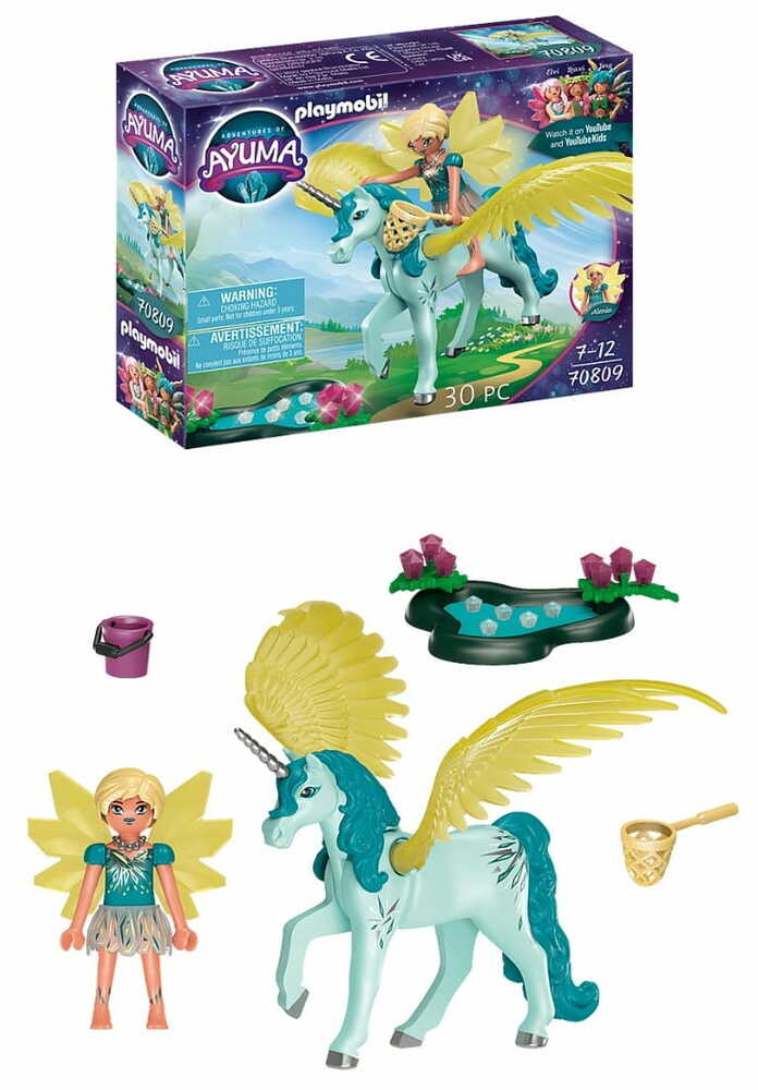 It's going to be magical! The adventures in Ayuma continue. The precious crystals are the most important energy source in Ayuma. That is why the fairies have made it their goal to protect them. The Crystal Fairy also likes to dedicate herself to this important task and sets off with her soul animal, the crystal unicorn, in search of new crystals. She finds them at a small pond and carefully picks up the precious stones with her landing net. Then she swings herself onto the back of her crystal unicorn and takes to the skies. The set includes a Crystal Fairy with crystal unicorn, a crystal pond, a bucket, a landing net, a pair of wings and other magical extras.