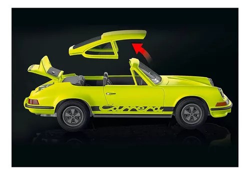 Who hasn't dreamed of owning a real Porsche as a child? With the Porsche 911 Carrera RS 2.7 a real nostalgic sports car is now coming to the PLAYMOBIL range. The world's first road sports car with front and rear spoilers also cuts a great figure as a PLAYMOBIL model. The detailed and lovingly designed body with its legendary shape, aerodynamic details, like the rear spoiler, better known as ‘Duck Tail’, will not only delight sports car fans. The rear-view mirror and headlight rings in a noble chrome look as well as the curved Carrera lettering on the side give the classic car a special elegance. The roof is removable for inserting the figures inside the car. When the rear bonnet is opened, it reveals the 6-cylinder boxer engine. Whether it's a sporty road trip or a winding country road: with the Porsche 911 Carrera RS 2.7 from PLAYMOBIL, every drive is an experience. A unique sports car model that no collection should be without! The playset includes a Porsche 911 Carrera RS 2.7 from PLAYMOBIL in a chic yellow colour with removable roof and rear bonnet that can be opened, two PLAYMOBIL figures with picnic basket, blanket and road map as well as other extras for an unforgettable trip. The included presentation sign lists the most important data of the sports car.