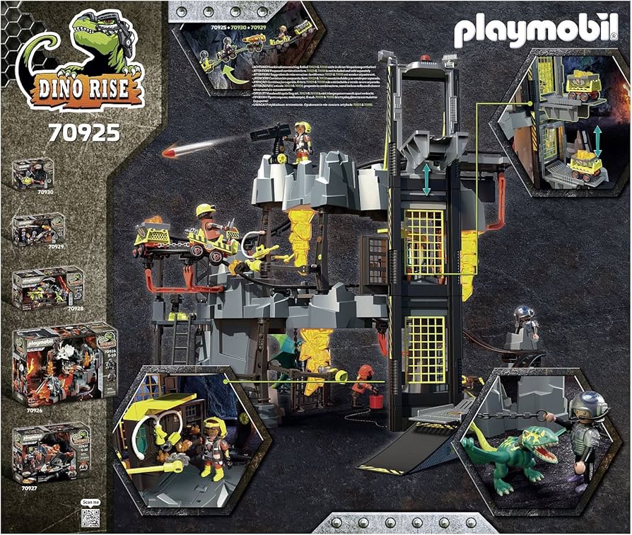 The set features Dino Rise team member Kaidan, the leader of the mine gang and two of his villains, a dino mine with track system, mine cruisers and lift, a dimorphodon, various tools and lots of other accessories for action-packed dinosaur fun.