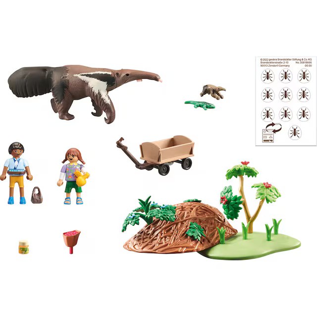 - The set includes PLAYMOBIL children's figures, an anteater with baby, an anthill with plants, a handcart, an animal knowledge card and many other extras.