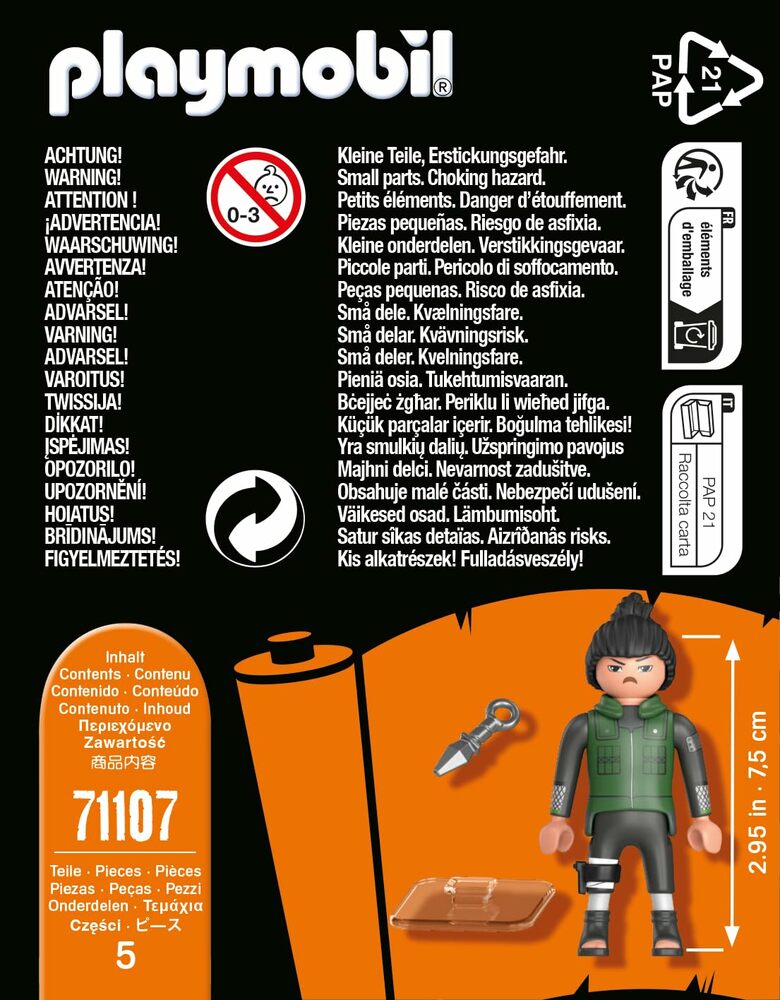 The successful collaboration between PLAYMOBIL and NARUTO goes into the second round. All anime fans can look forward to new characters from the exciting NARUTO universe. The creative figures inspire with lots of details and cool accessories from the well-known hit series and are the eye-catcher in every fan article showcase. The PLAYMOBIL figure shows NARUTO SHIPPUDEN character Shikamaru Nara in dark green vest with black pants and black boots. As a weapon he has a kunai with him.