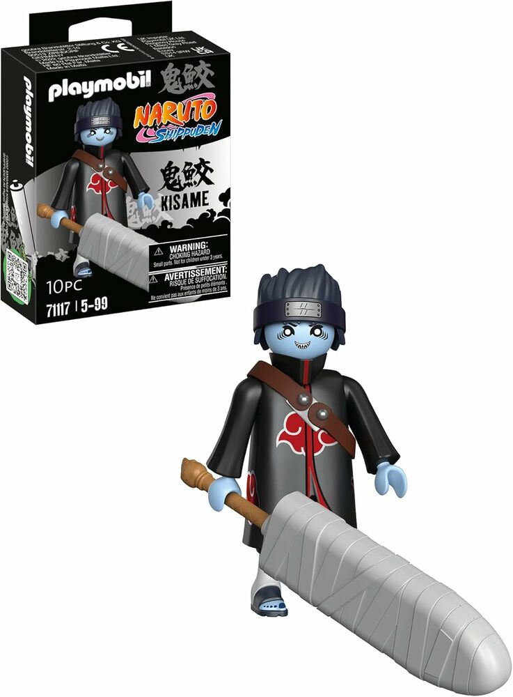 Kisame Hoshigaki is a member of Akatsuki and one of the seven shinobi swordsmen. He wields the most powerful of the seven swords, the Samehada. In battle, Kisame is very aggressive. With blue skin and hair, fangs and fish-like eyes, his appearance strongly resembles a shark. The PLAYMOBIL playset includes Naruto Shippuden character Kisame with Samehada sword and sling.