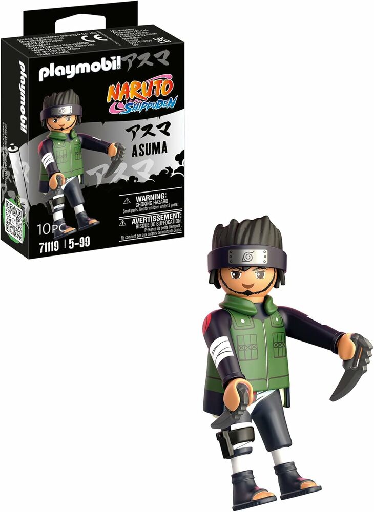 The PLAYMOBIL set includes NARUTO SHIPPUDEN character Asuma Sarutobi in a battle suit with matching green vest and headband.
