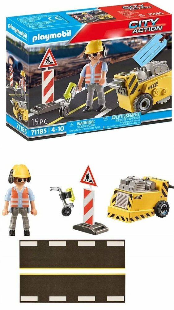 PLAYMOBIL Gift Set Construction Worker with edge cutter as well as construction sign and range finder.