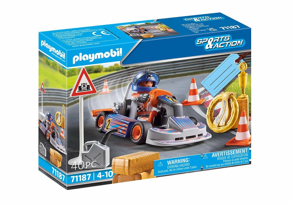 Looking for a great gift for little motorsport fans? Then the PLAYMOBIL Go-Kart Racer gift set is just the thing. The lovingly designed toy set takes racing enthusiastic children into the exciting racing life. The driver puts on his helmet, takes a seat in the sleek go-kart and off he goes onto the race track. Will he cross the finish line first? The PLAYMOBIL gift set consists of a PLAYMOBIL racing driver, a go-kart, three pylons, trophy, winner's wreath and other great racing accessories. The go-kart can be refueled with the canister. Thanks to decorative box and name plate for labeling, PLAYMOBIL gift sets save wrapping paper and thus protect the environment. A great toy set to bring home and give away.