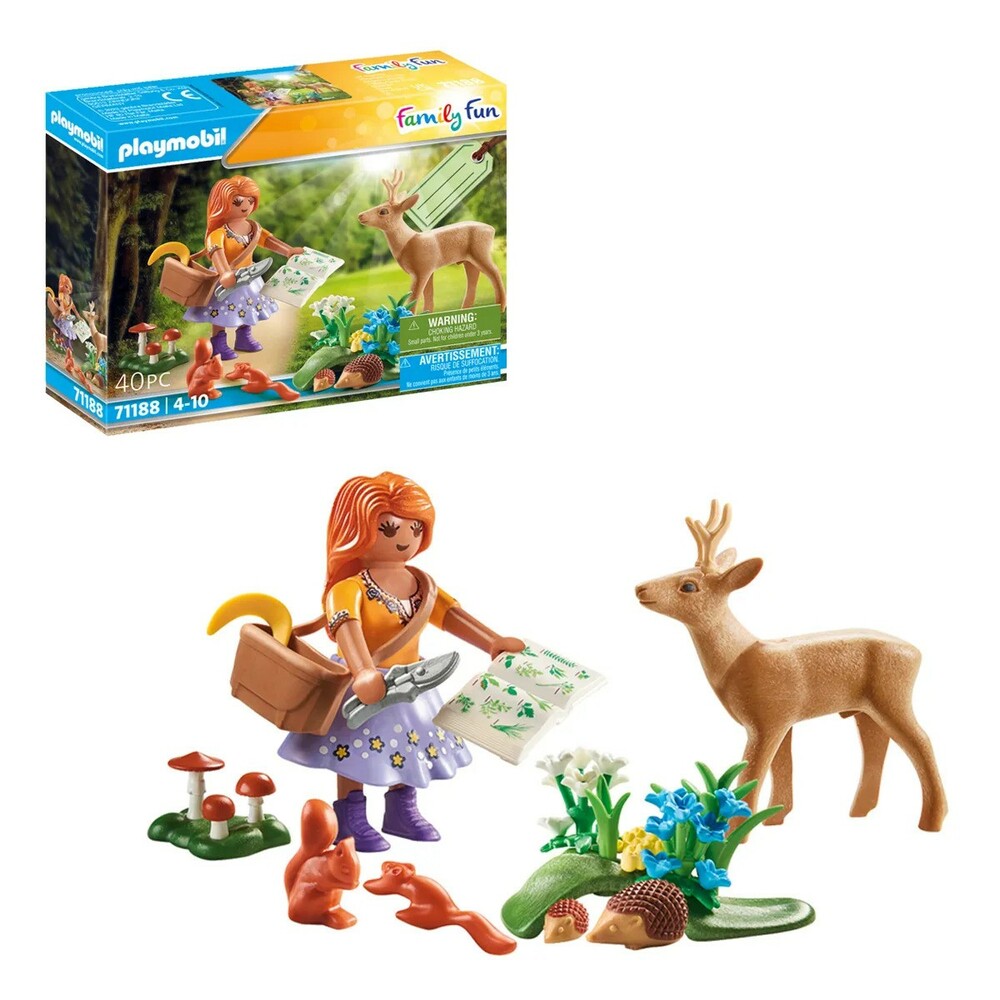 Nature-loving children aged 4 and up will be thrilled by this PLAYMOBIL gift set. With the plant scientist kids can experience many exciting adventures in the field, forest and meadow. For information, the collector has a book on herbalism with her. In her shoulder bag she carries a sickle and plant shears. The toy set contains a PLAYMOBIL figure, two hedgehogs, two squirrels, a deer, a sickle, various herbs and other lovely extras. Thanks to decorative box and name tag for labeling, PLAYMOBIL gift sets save wrapping paper and thus protect the environment. A great toy set to bring home and give away.