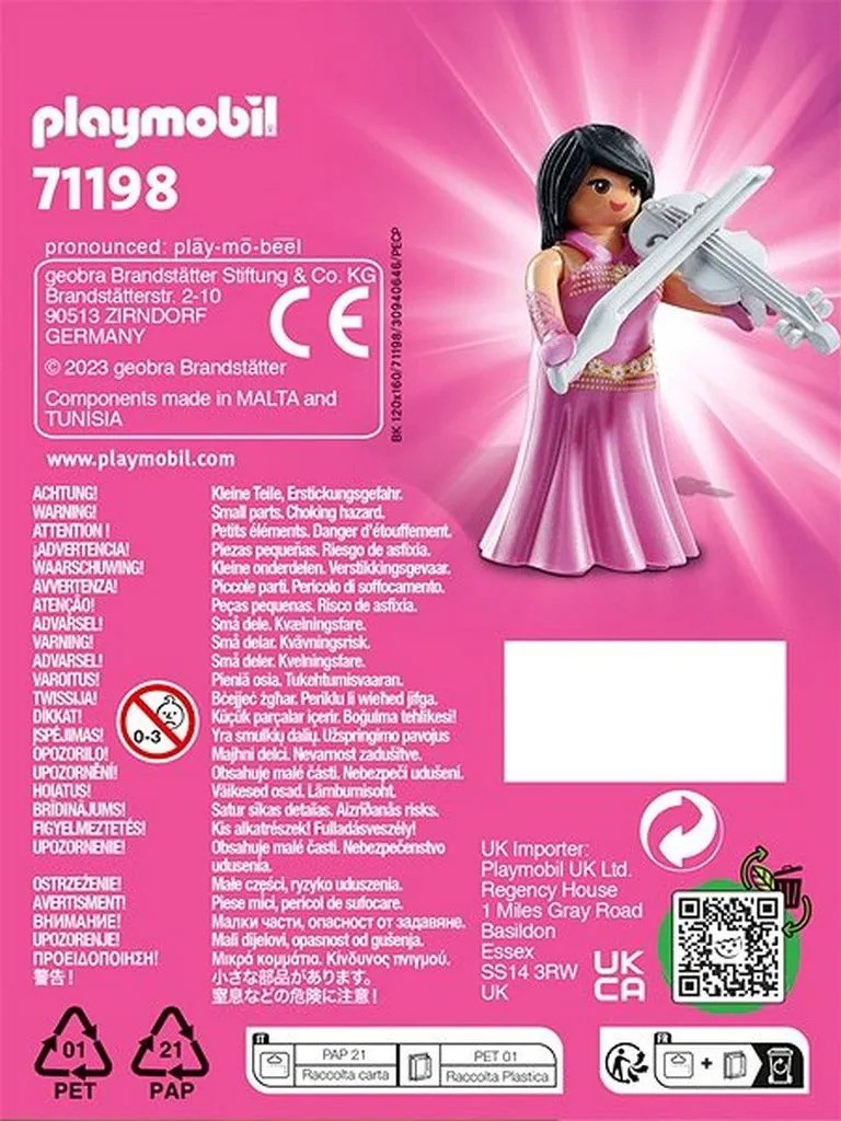 Practice your next piece of music with the enchanting PLAYMOBIL violinist. Whether it's lullabies or big concerts, the talented violinist plays all pieces with great ease and dedication and captivates her audience. A great souvenir for little classical music fans. The toy set includes a PLAYMOBIL figure with violin and bow. The two-piece dress is removable. With the creative PLAYMO-Friends play figures, children can play alone or together with friends and always come up with new exciting stories. Great play and collecting fun for children aged 4 and up.