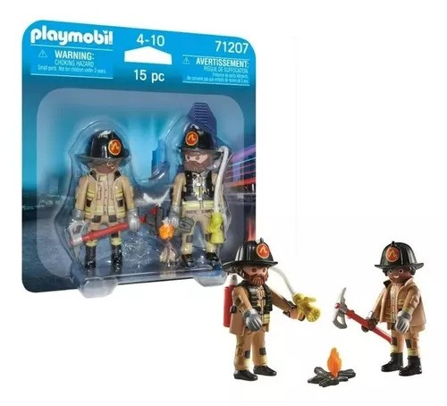 Run to the rescue with the brave PLAYMOBIL firefighting team. With fire extinguisher and axe, the firefighters make their way to the source of the fire. Fortunately, they can quickly extinguish the flames. Glove tops and helmets can be removed. The playset includes two PLAYMOBIL figures, fire extinguisher, fire axe and fireplace. Play fun in a double pack is available with the great PLAYMOBIL DuoPacks. Two figures with accessories provide lots of role-playing fun.