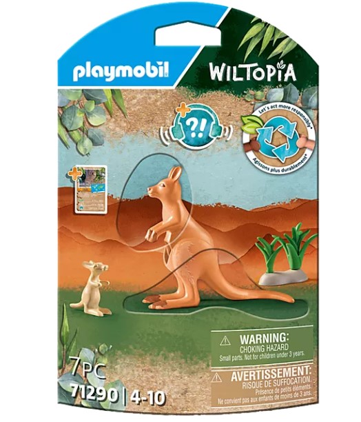 Discover the fascinating animal and plant world of our planet with PLAYMOBIL WILTOPIA. How about the cute kangaroo to add to your animal collection? The kangaroo mother carries her young around in her pouch and looks for food for herself and her hungry offspring. The large kangaroo figure can move its upper body up and down. If the upper body is tilted back, the young animal can be placed in the belly pouch.
