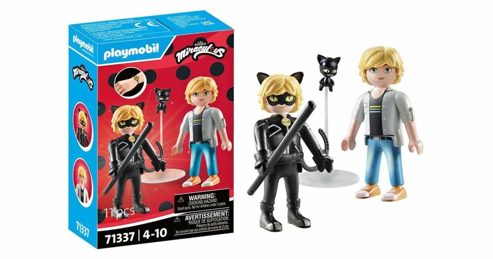 Embark on an exciting adventure into the world of Miraculous with the new PLAYMOBIL playset Miraculous: Adrien & Cat Noir! Experience unforgettable moments with Adrien in two thrilling variants - once as Adrien himself and then transformed into the fearless superhero Cat Noir. Plagg, the Kwami, is also included.