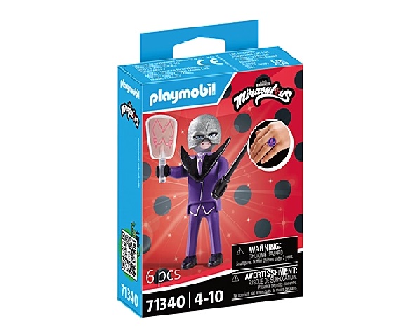 Experience the dark side of the Miraculous world with the Miraculous: Hawk Moth playset by PLAYMOBIL! This figure brings to life Ladybug and Cat Noir's greatest adversary: Hawk Moth. The character can be played as Adrien's father, Gabriel Agreste, or as the supervillain Hawk Moth with his mask. Included in the set is Hawk Moth, along with a child-sized ring that can also be used as a charm with the bracelets from other Miraculous sets. Step into the role of Hawk Moth and try to obtain the Miraculous from Ladybug and Cat Noir.