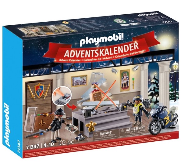 Even during the pre-Christmas season, crime does not rest. In the museum theft, burglars try to capture high-value exhibits. Over the 24 days leading up to Christmas, a diorama is created with the burglary scenario. The platform "collapses" at the push of a button. Includes police motorcycle.