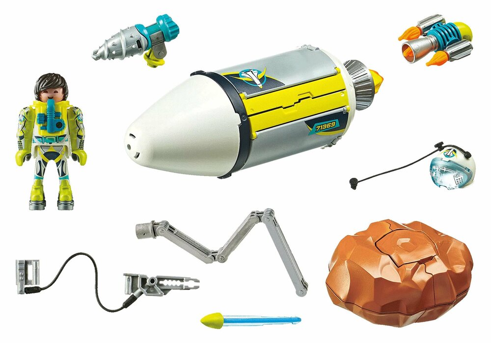- Accessories: 1 meteoroid destroyer with 2 double cannons, 2 flaps large, 2 flaps small, 1 cover, 1 nozzle, 1 flame with holder, 2 covers, 4 antennas 1 rock, 5 arrow bullets, 1 drill, 1 drill holder, 1 articulated arm, 1 drive module astronaut, 1 astronaut helmet, 1 pair of astronaut shoes, 1 pair of bracers, 2 cables, 1 dynamite