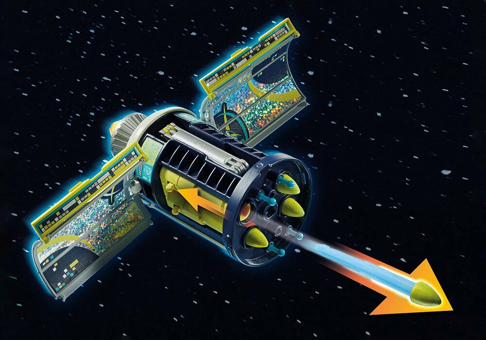 - Meteoroid Destroyer with astronaut, swiveling articulated arm and firing cannons to repel the meteoroid.