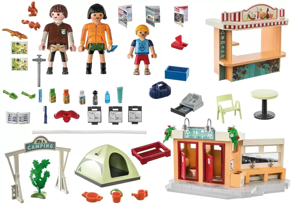 The PLAYMOBIL campsite is the ideal set for little camping fans. In addition to comfortable camping furniture, the vacationers also have a clean sanitary building and a kitchen at their disposal. At the kiosk you can get some tasty snacks. A wonderful campsite to feel at home and unwind to your heart's content. The detailed camping toy includes three PLAYMOBIL figures, a sanitary building, a kiosk, table, chairs and other great extras for fun role-playing adventures. With the various PLAYMOBIL camping playsets (sold separately), children are inspired to tell their own stories.