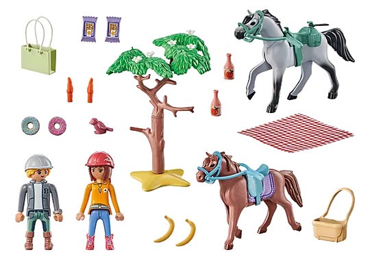 The Waterfall Ranch at the foot of the White Mountains is a true horse paradise. Both humans and animals feel at home here. Along with their guest horses, Amelia and Ben embark on a horseback riding trip to the beach. Of course, they have also thought about a delicious refreshment for themselves and their animal companions. The fantastic PLAYMOBIL Starter Packs invite children to dive directly into the diverse world of PLAYMOBIL. The sets include play figures and matching accessories from popular PLAYMOBIL worlds, are quickly assembled, and immediately ready play. Good for the environment: The playset is made up of more than 80% sustainable materials.