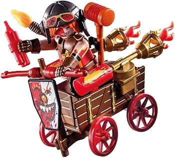 The Novelmore knights play world by PLAYMOBIL is full of adventures: Kahboom, the fire-crazed court jester of the Burnham Raiders, plunges into the action with his racing cart. Equipped with dynamite and torches, Kahboom is unpredictable. However, the Knights of Novelmore also know how to defend themselves.