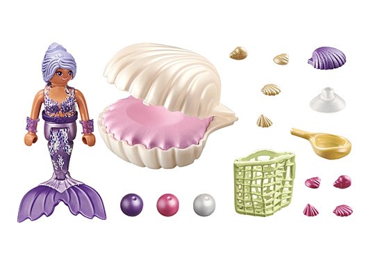 The play figure set includes a mermaid, a shell case, a pearl holder, mini shells, and many other fantastic extras. A perfect gift or souvenir for imaginative children aged 4 and above.