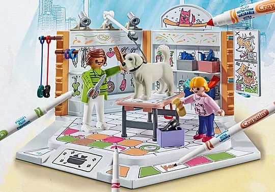 Bring color into play with the PLAYMOBIL Color Dog Salon. Unleash your creativity and redesign figures, the store, and labels over and over again.