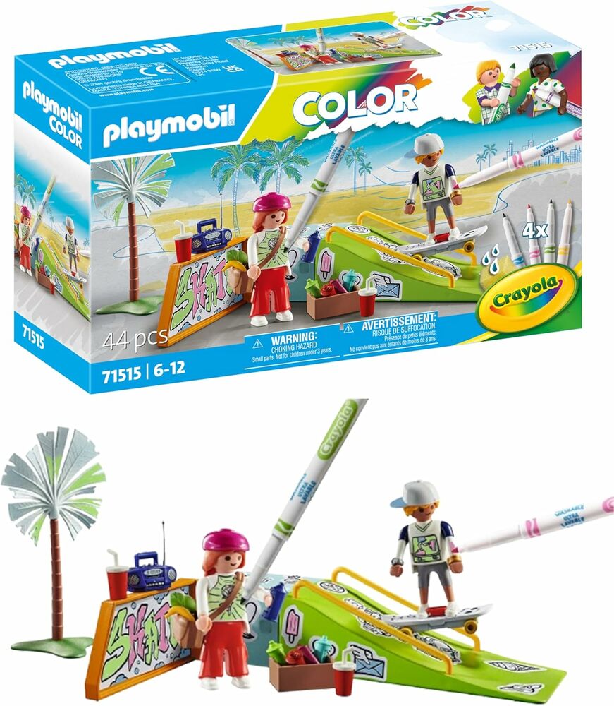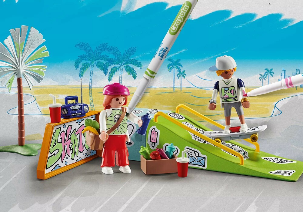 - Add color to your play with the cool PLAYMOBIL Color Skate Park. Enjoy creative coloring fun with the washable markers for endless use!