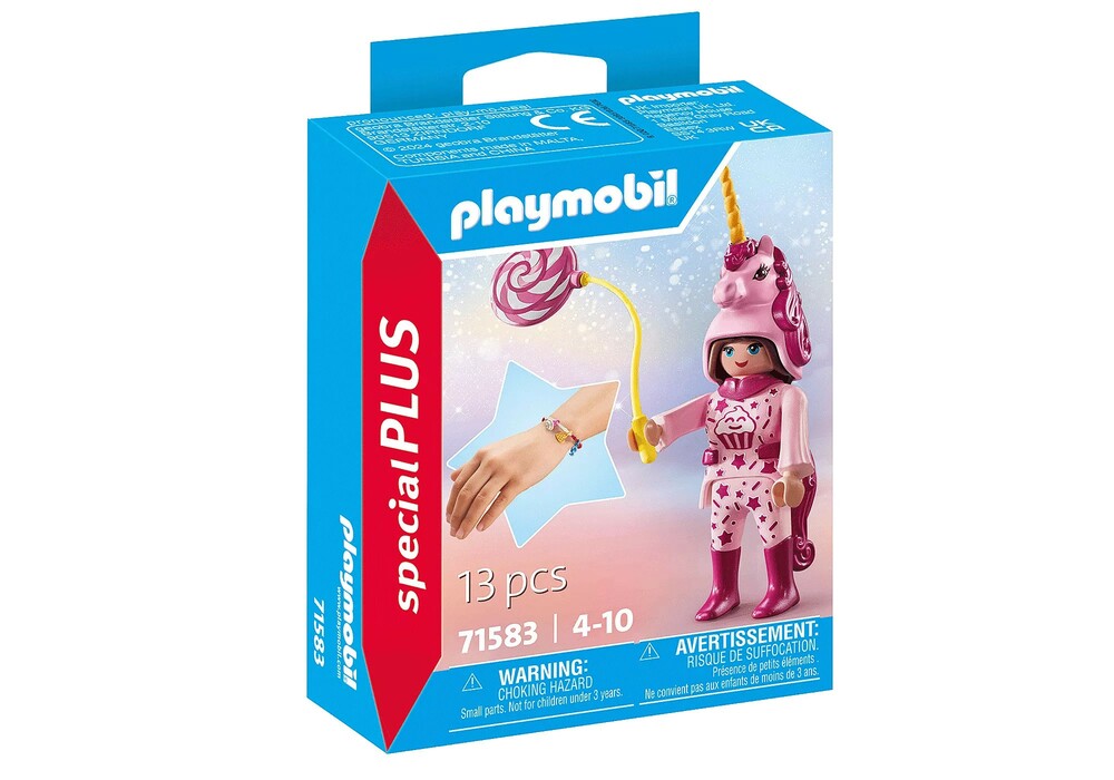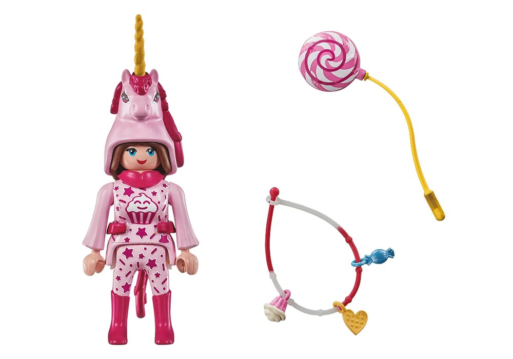 - Head to the costume party with the Sweets Unicorn from PLAYMOBIL Special Plus, featuring a silicone bracelet and three charms!