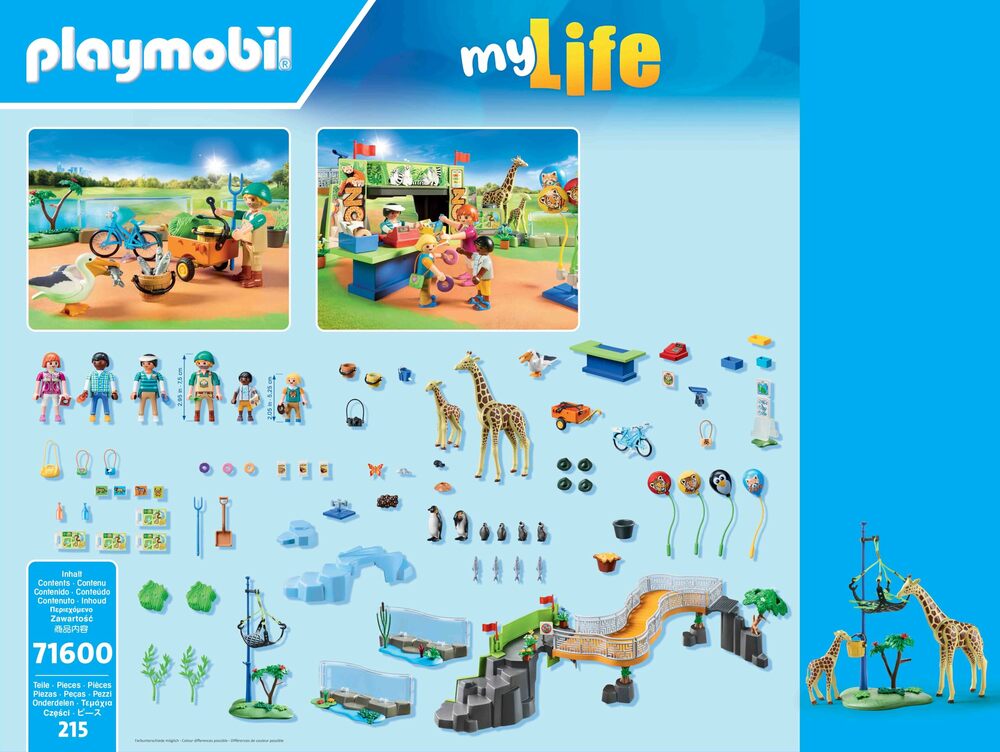 For the anniversary, we now present the Large City Zoo in an exciting new edition. During your visit to the zoo, you can observe native and exotic animals up close. It's feeding time, and the zookeeper is providing nourishment and fresh water to the giraffes. Meanwhile, the penguins in the neighboring enclosure joyfully glide down the ice slide into the water. A lovingly crafted playset for young animal enthusiasts. With the included enclosure elements, the animal habitats can be flexibly arranged.