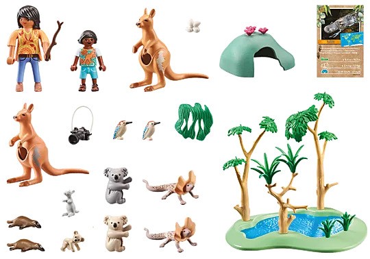 - Animals: 2x platypus, 2x ruffed lizard, 2x kingfisher, 2x koala, 1x koala baby, 2x kangaroo, 1x kangaroo baby