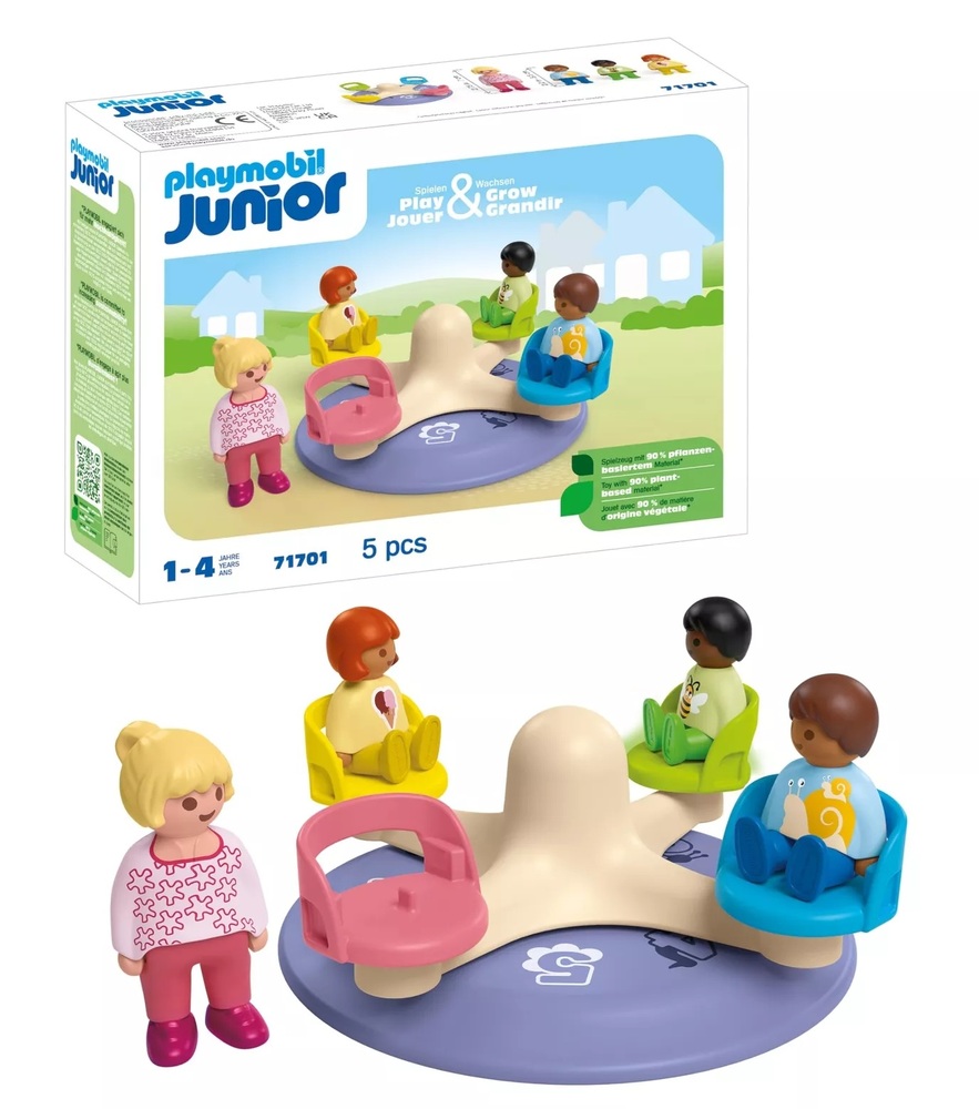 All PLAYMOBIL JUNIOR playsets are also made from over 90% plant-based plastics, which can be traced back to materials left over from food or paper production using the mass balance approach used in the circular economy and in accordance with the ISCC-208 standard. These plastics are as robust and easy to care for as usual.