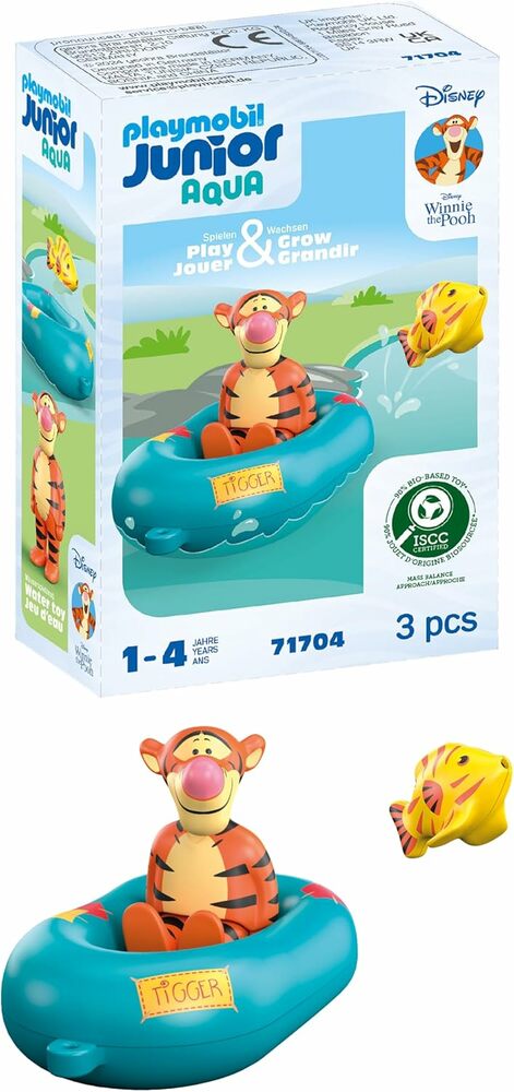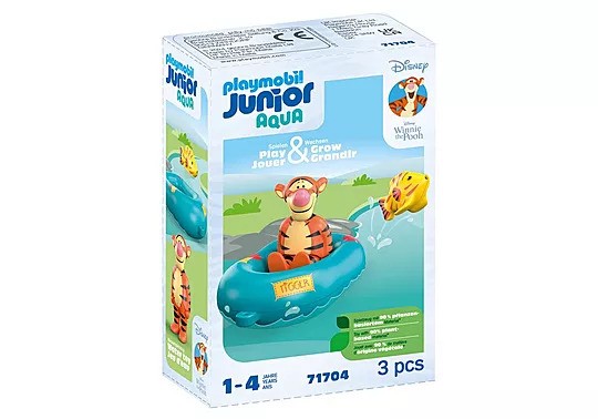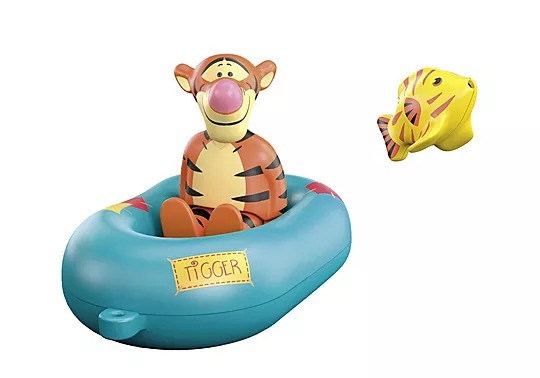 With the Rubber Boat Ride bath set inspired by Disney's Tigger, playful water exploration becomes a breeze. Your child develops their fine motor skills while having a blast in the tub, and they become more comfortable in the water. Let your child embark on grand adventures with Tigger! Quickly place Tigger in the boat and watch as he floats down the river. Suddenly, the funny tiger fish appears – who will catch it first?