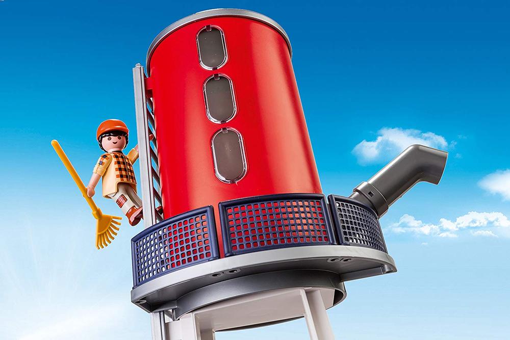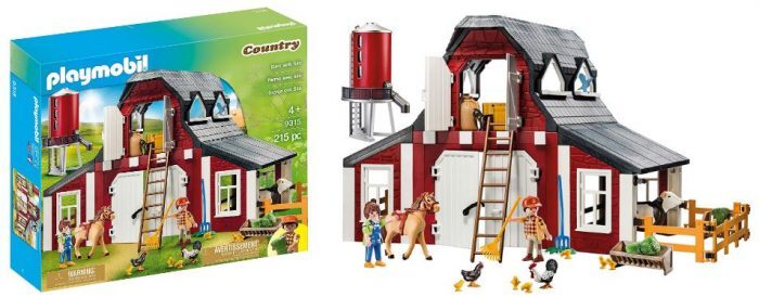 Enjoy a fun time on the farm with the Barn with Silo. You can start the day by feeding the farm animals, including the wandering chickens and the friendly cow. The working silo offers plenty of storage space for feed for the season’s harvest. Just remove the silo’s roof and add the feed through the top. Then, tilt the spout down to release the feed into the bucket. Don’t forget to give the barn cat some attention as well; you can use the ladder to climb up to the loft where he’ll likely be snoozing. It’s easy to access the barn and the loft through either the main double entry or the opening upper loft doors. Set includes two figures, horse, cow, chickens, rooster, cat, hay bales, pitchfork, fencing, ladder, and lots of other accessories.