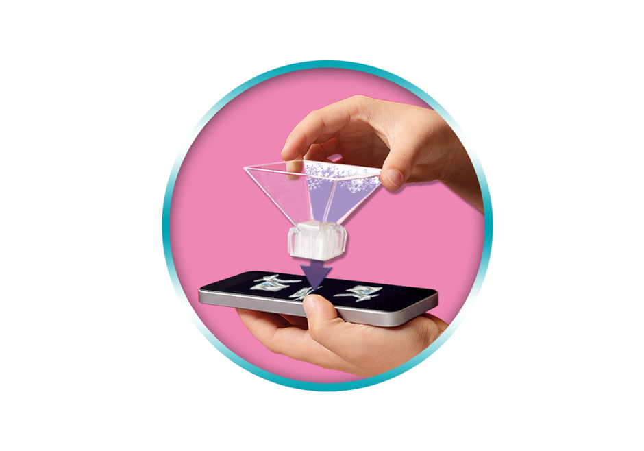 - The crystal base serves as a holder for the hologram cone. The rubberized base protects the display of the smartphone or tablet.
