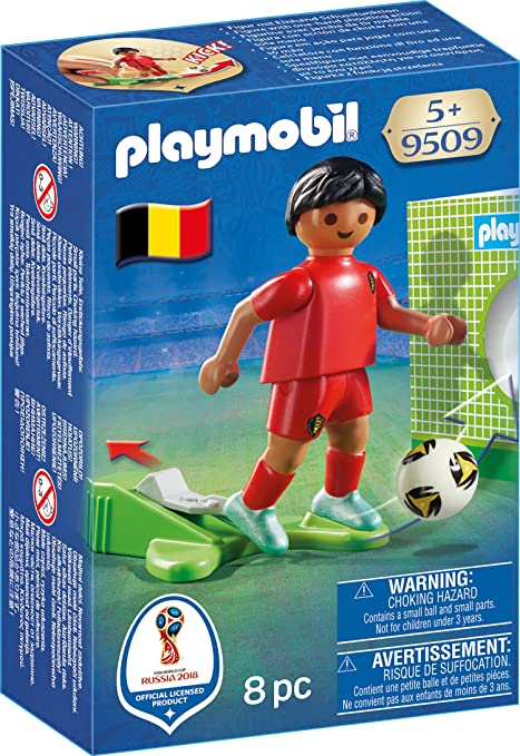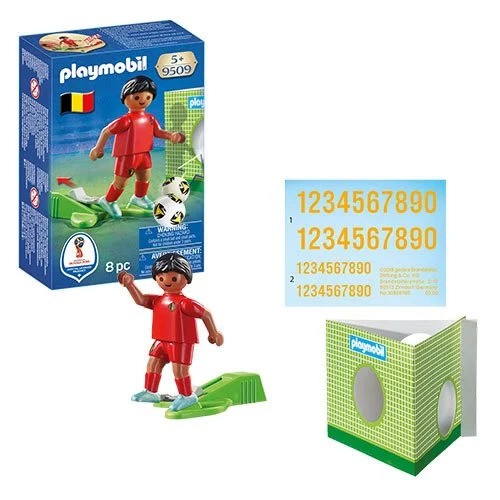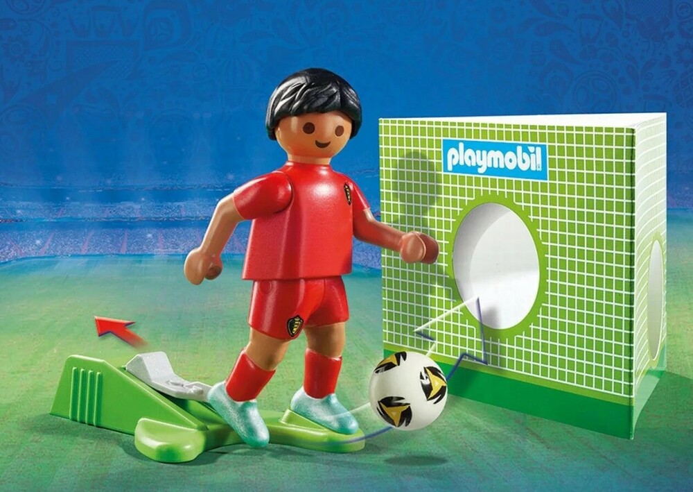 Lead the team to victory with the National team player from Belgium. Simply pull back the set's lever to move the player's leg and kick the soccer ball across the field. Combine the figure with the take along 2018 Fifa World Cup Russia Arena (9298 – sold separately) for added fun!