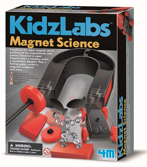 With the Kidz Labs Magnet Science, perform fun magnet games and experiments. Learn the science principles involved. Contains a super magnet set that could be transformed to perform 10 fun experiments and games. Make a super power horse shoe magnet or a magnet wand. Construct a super magnet racer, a yacht compass or a mysterious dangler. You can also have great fun playing a fishing game or creating a magnetic sculpture, and so much more.
