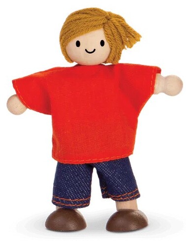 All doll heads and bodies are made of solid wood. Arms and legs are wire that can be easily shaped. Compatible with PlanToys dollhouses.
