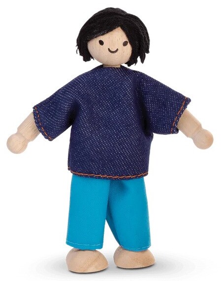 All doll heads and bodies are made of solid wood. Arms and legs are wire that can be easily shaped. Compatible with PlanToys dollhouses.