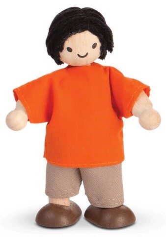 All doll heads and bodies are made of solid wood. Arms and legs are wire that can be easily shaped. Compatible with PlanToys dollhouses.